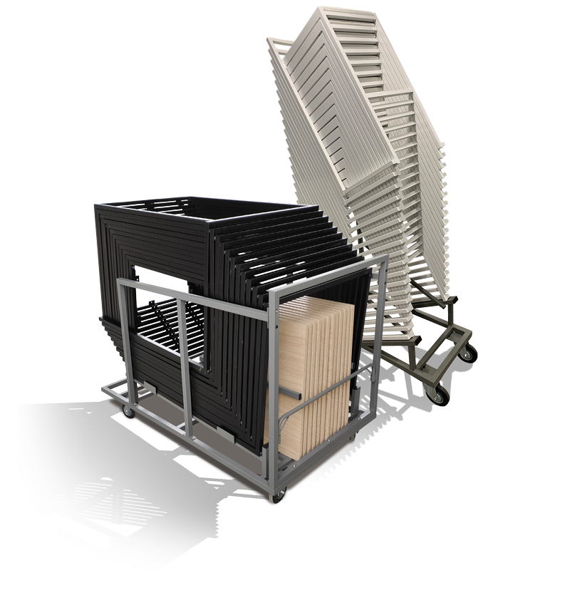 With specially designed carts, our event rental furniture product lines offer a complete solution for storage, transport, event setup, and takedown. These custom designed carts can streamline event furniture operations, enhancing the overall experience for your clients.