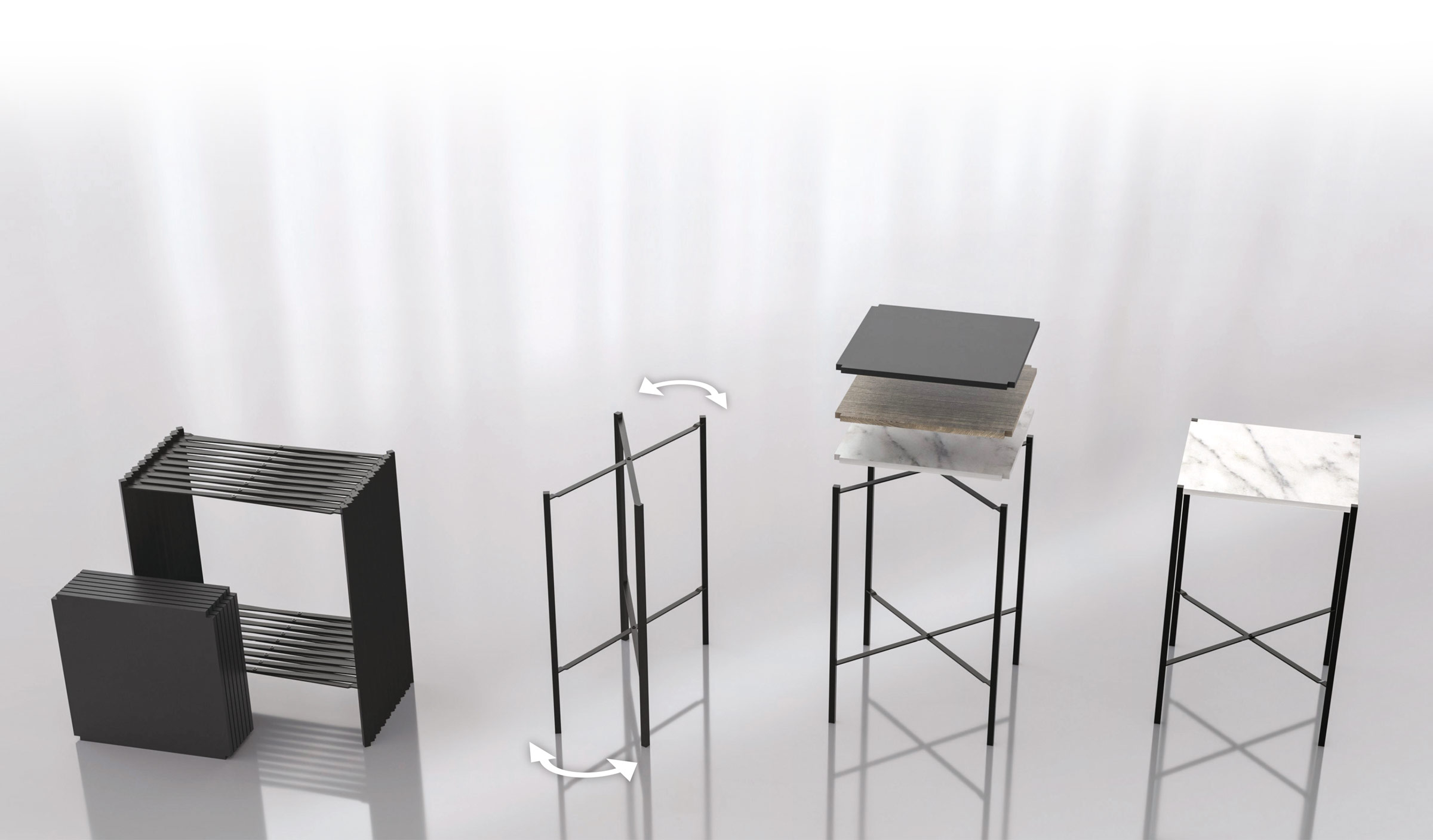 Our Innovative foldable design make this the perfect choice for any event professional. Choose your preferred Kross table frame color and select the table top finish for endless possibilities. This unique design allows you to setup cocktail tables and coffee tables that seamlessly integrate with the ambiance of your events, infusing a modern and sophisticated flair.