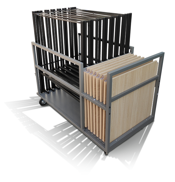 Kross table frames are foldable for space saving storage. With the specially designed cart for Kross table frames and tops, the Kross system offers a complete solution for storage, transport, event setup,and take down. It can streamline operations and enhance the overall experience for your clients.