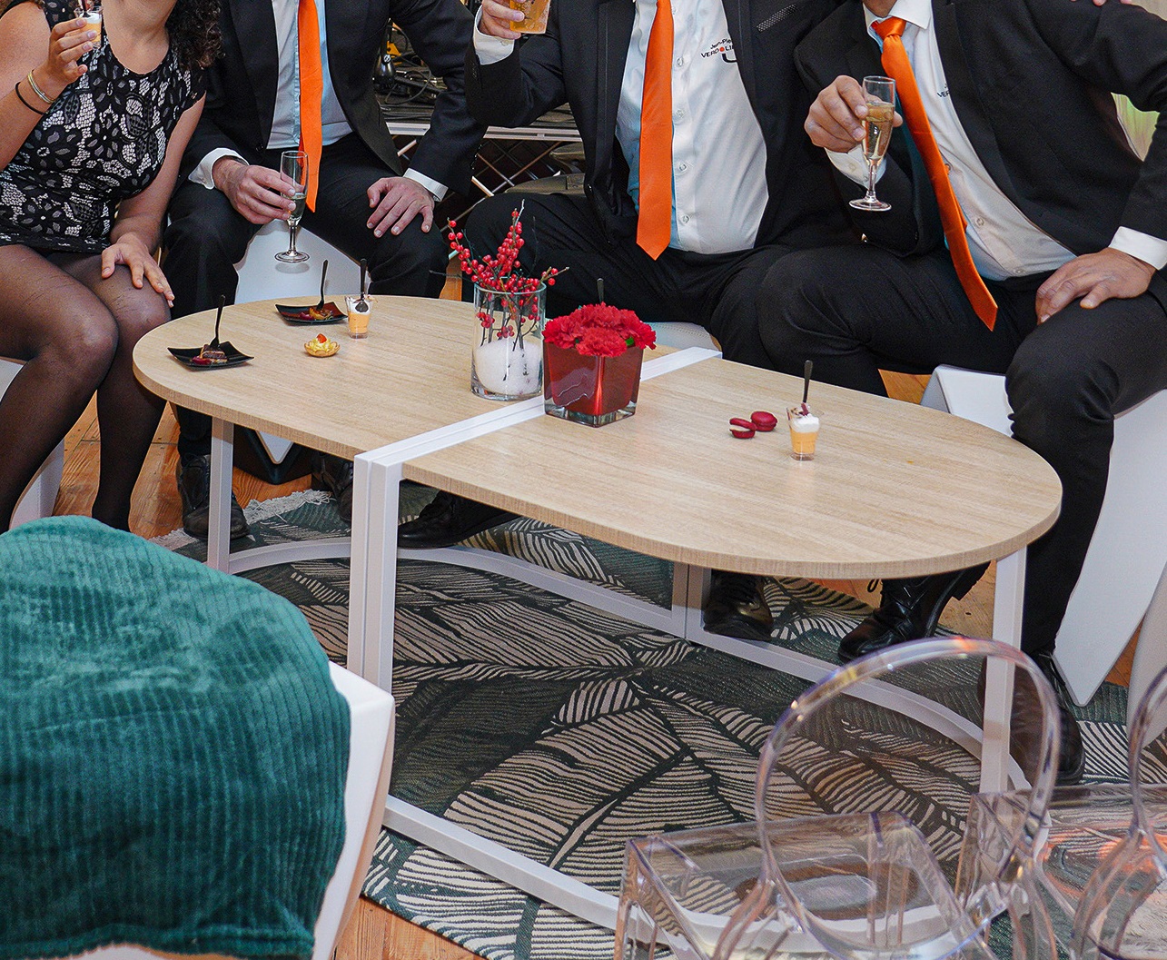 Our Kurvo event table product line is modern, versatile, and intuitive. The Kurvo table product line includes cocktail and coffee tables that can be designed, connected and extended with compatible accessories, table tops and other Look My Table product lines. The Kurvo original table shape makes it possible to create unique combinations, using them alone, back-to-back, or in the shape of a star. Specially designed accessories include: bottle holder, purse hook and extensions for even more customization and functionality. Kurvo tables allow you to choose the best table height, and table top color and finish for the desired ambience at all your events.